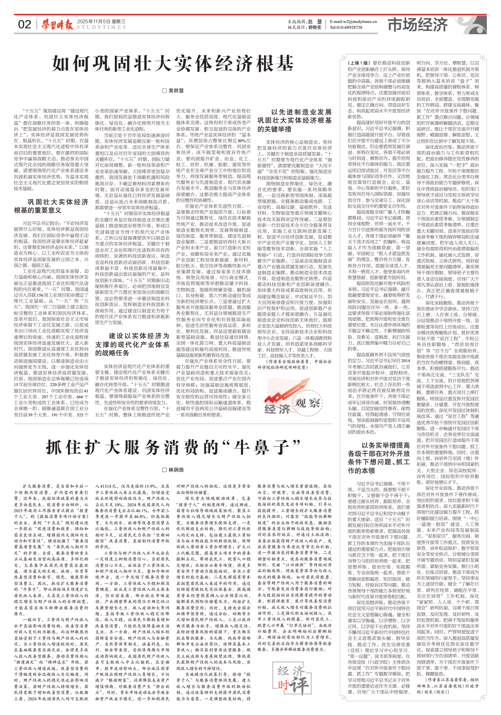 “十五五”规划建议将“建设现代化产业体系,巩固壮大实体经济根基”摆在战略任务的第一条,明确提出“把发展经济的着力点放在实体经济上”。实体经济是我国发展优势所在、根基所在。“十五五”时期,在基本实现社会主义现代化进程中具有承前启后的重要地位。要在激烈的国际竞争中赢得战略主动,推动事关中国式现代化全局的战略任务取得重大突破,就要围绕现代化产业体系建设来巩固拓展实体经济优势,为基本实现社会主义现代化奠定更加坚实的物质技术基础。