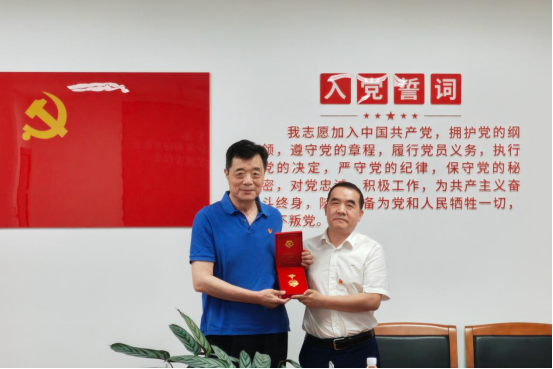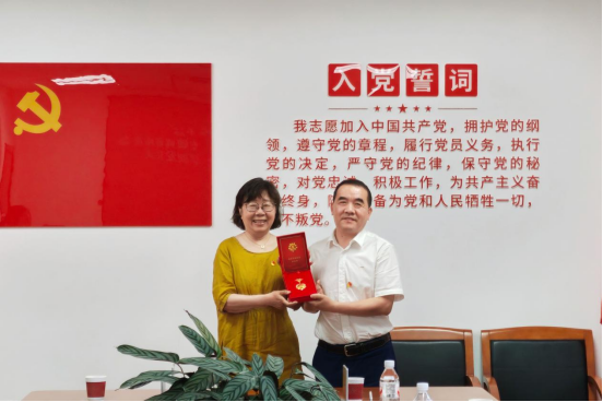 会议上,党委书记龚云为老党员韩朝华、香伶两位代表颁发“光荣在党50年”纪念章。