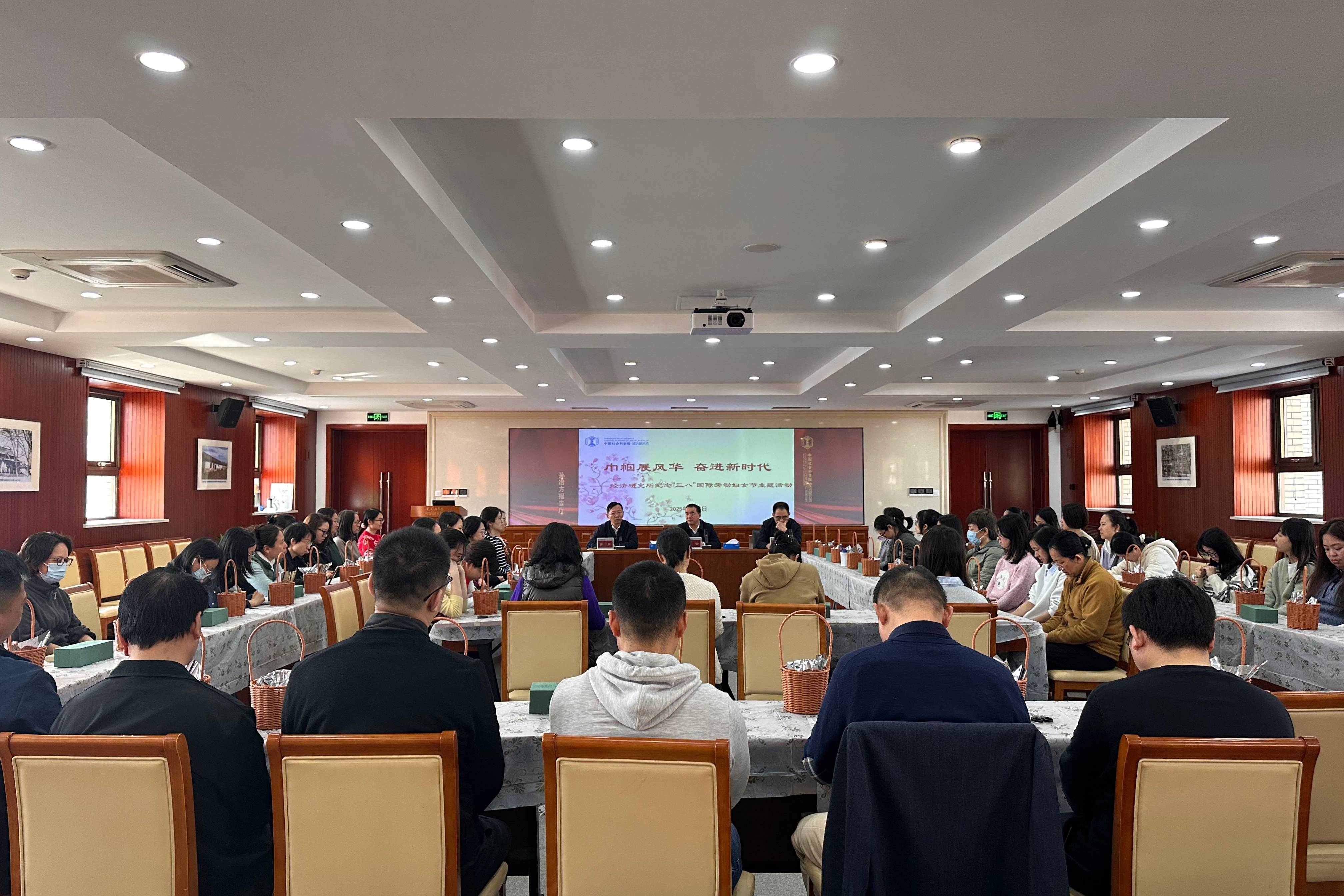 2025年3月4日,经济研究所举办“巾帼展风华 奋进新时代”主题活动,纪念第115个“三八”国际劳动妇女节。所党委书记龚云,所党委常委、副所长宋泓,所党委常委、纪委书记、副所长张鼐出席活动并讲话,向全所妇女同志致以节日祝贺。正在参加全国“两会”的所长、所党委副书记、全国人大代表李雪松通过有关方式向全所女职工表示亲切问候。本次活动由所工会、所妇工委主办,全所女职工以及男职工代表共计50多人参加。