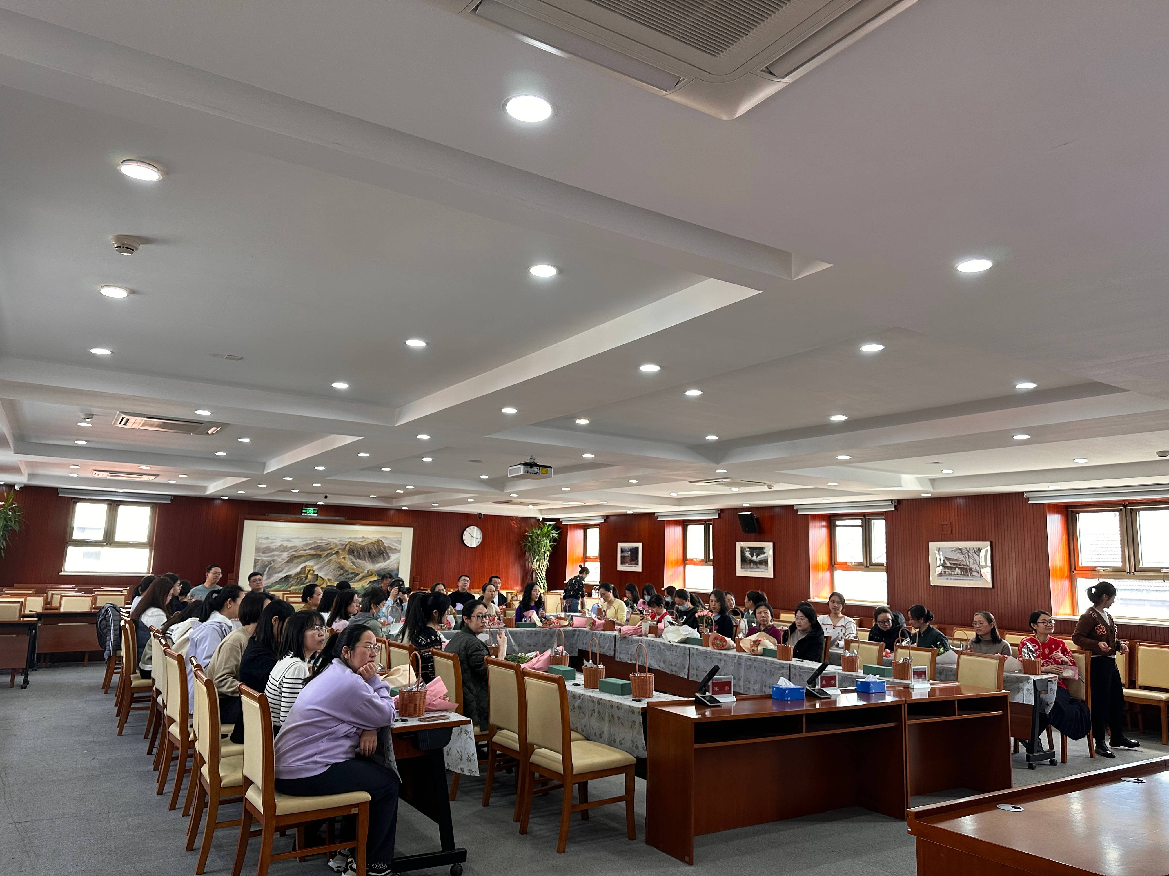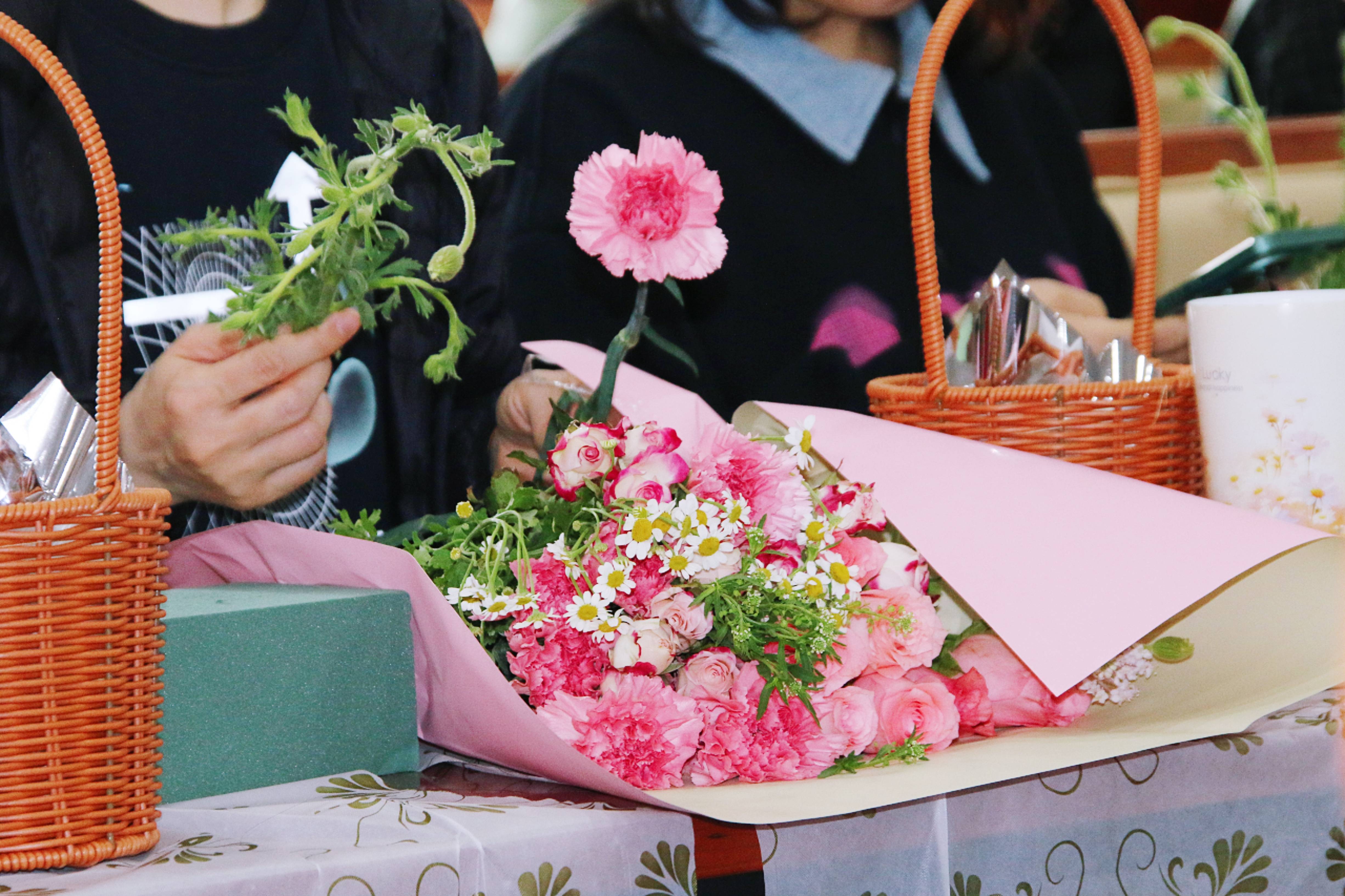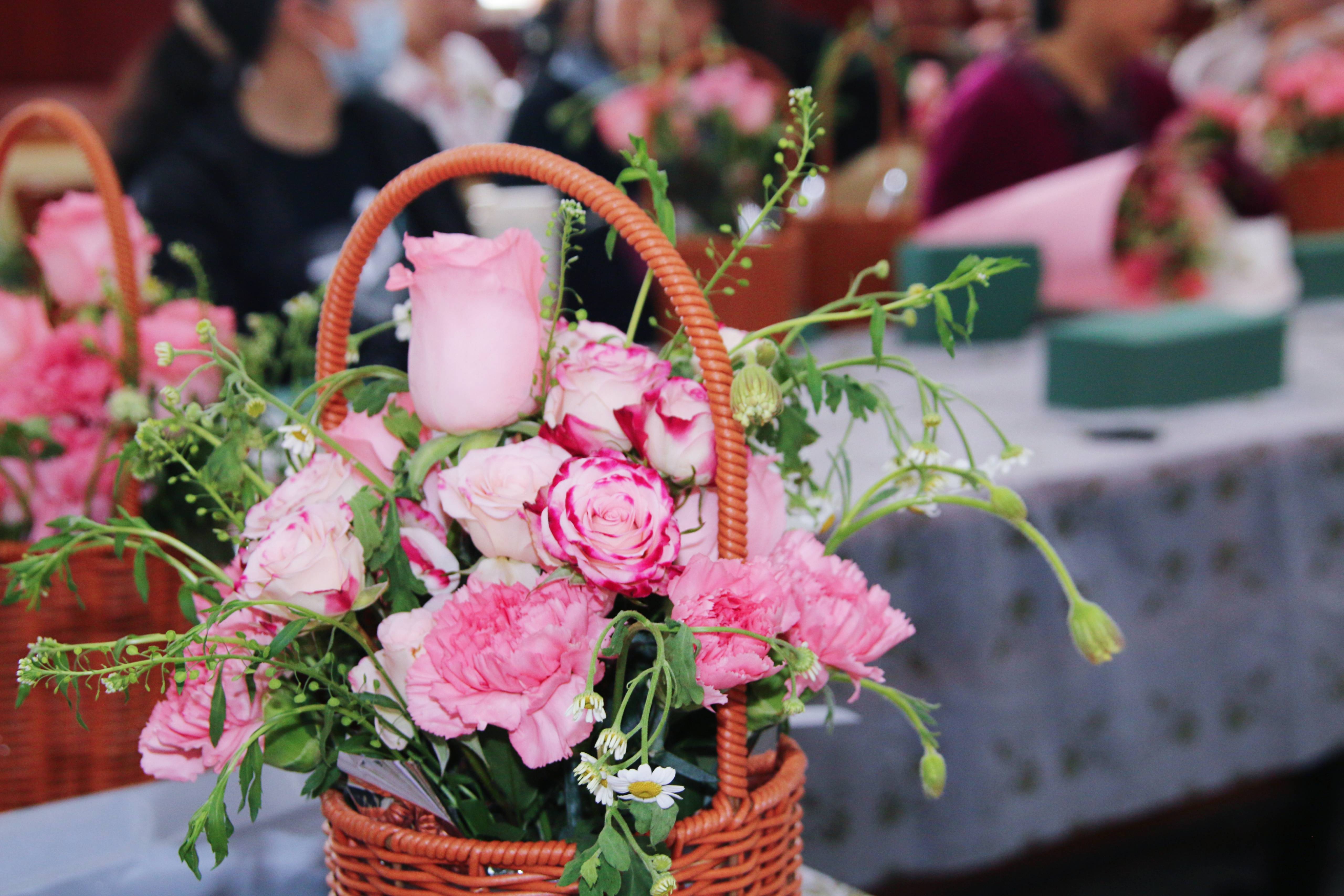 座谈会后,举行插花活动。花艺老师为大家普及了插花的历史由来,并讲解具体步骤和方法。妇女同志们积极动手参与,修枝剪叶,体会花艺魅力。
