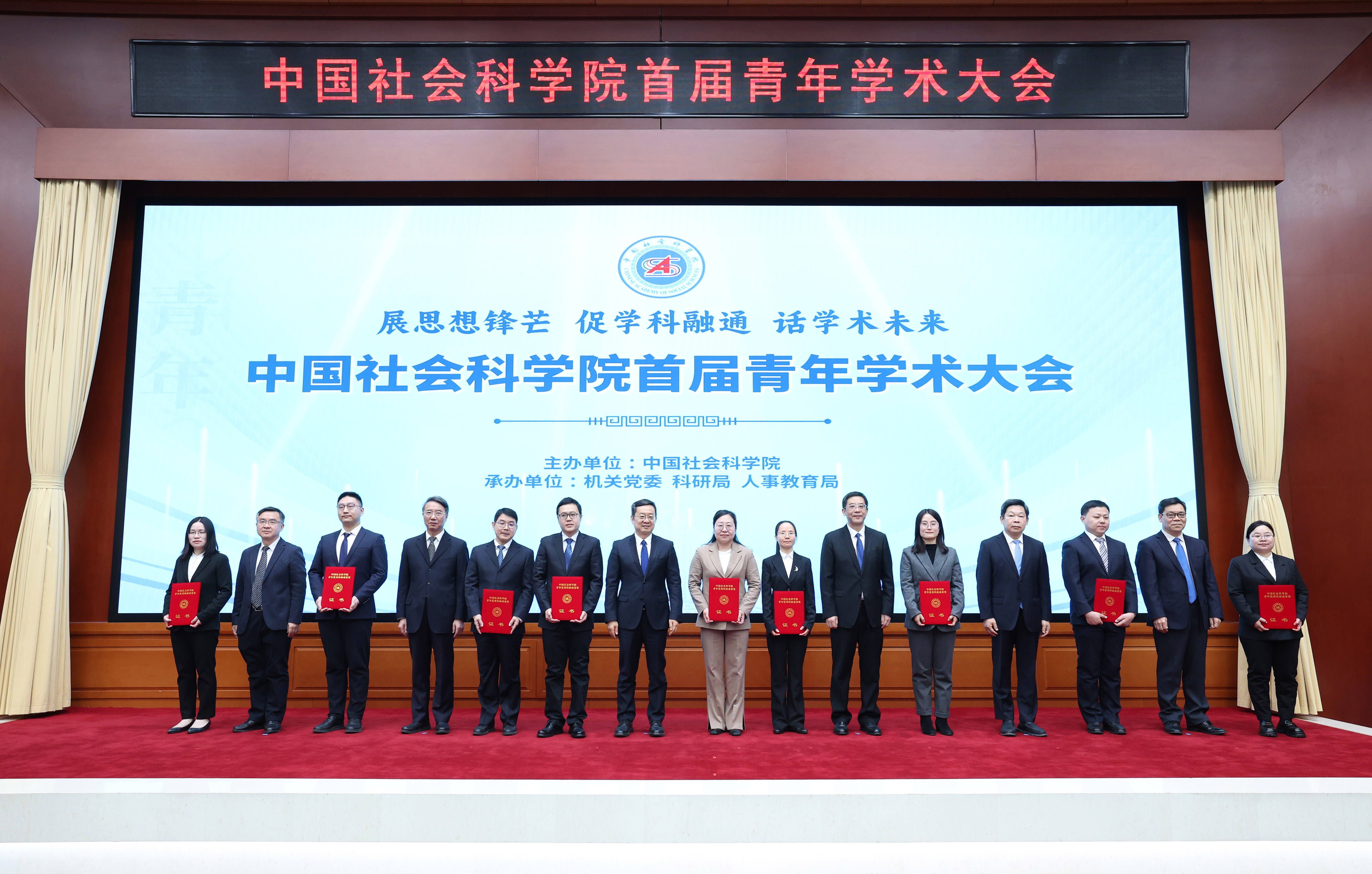 中国社会科学院副秘书长,驻院纪检监察组、院机关职能部门、院属各单位、代管单位负责同志,优秀青年科研骨干、第一届中国社会科学院青年优秀科研成果奖获奖代表、职称破格晋升青年代表等参加会议。会议由中国社会科学院主办,机关党委、科研局、人事教育局承办。