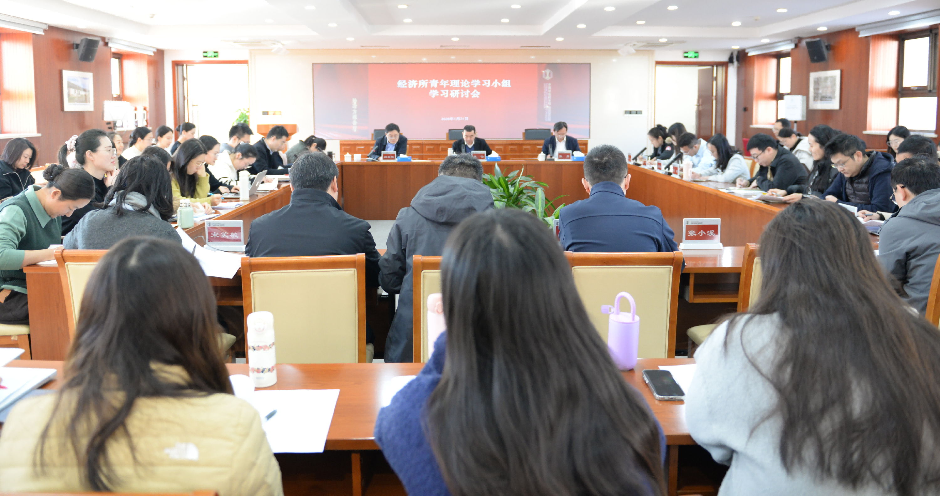 近日,经济研究所召开全所大会、第三期青年理论学习小组学习研讨会,学习交流高翔院长在院首届青年学术大会和院2026年度工作会议上的讲话精神。所党委书记龚云,纪委书记、副所长张鼐,副所长邓曲恒出席会议并讲话,多位青年学者交流发言。